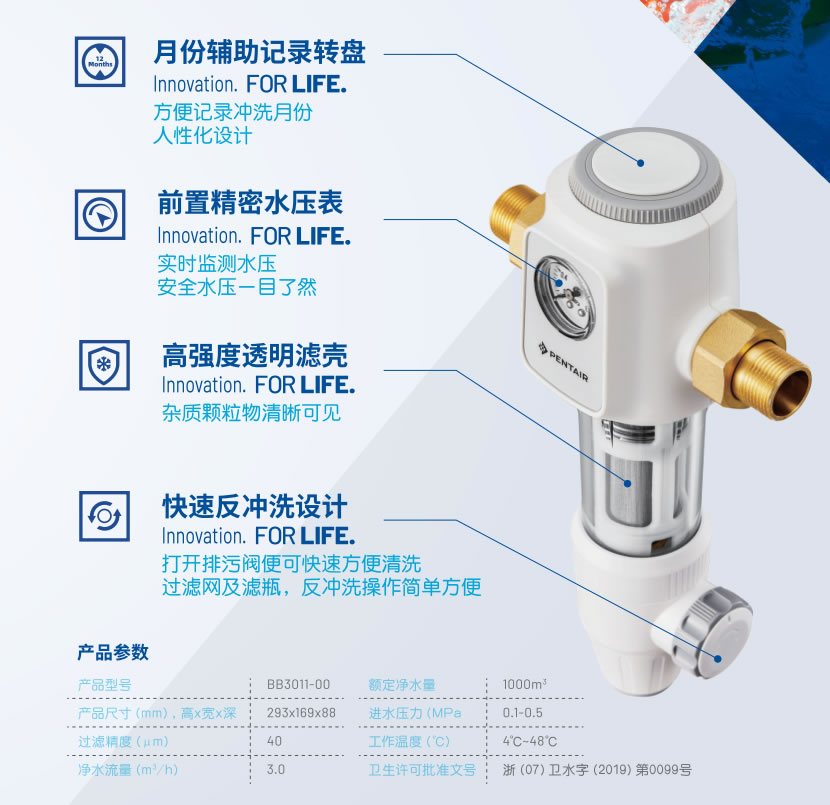 前置過濾是入戶第一道屏障,大家一定都聽過,濱特爾反沖式前置過濾,采用316不銹鋼網(wǎng),雙網(wǎng)加持;反沖式?jīng)_洗,360°旋刮,雙重清潔保障。